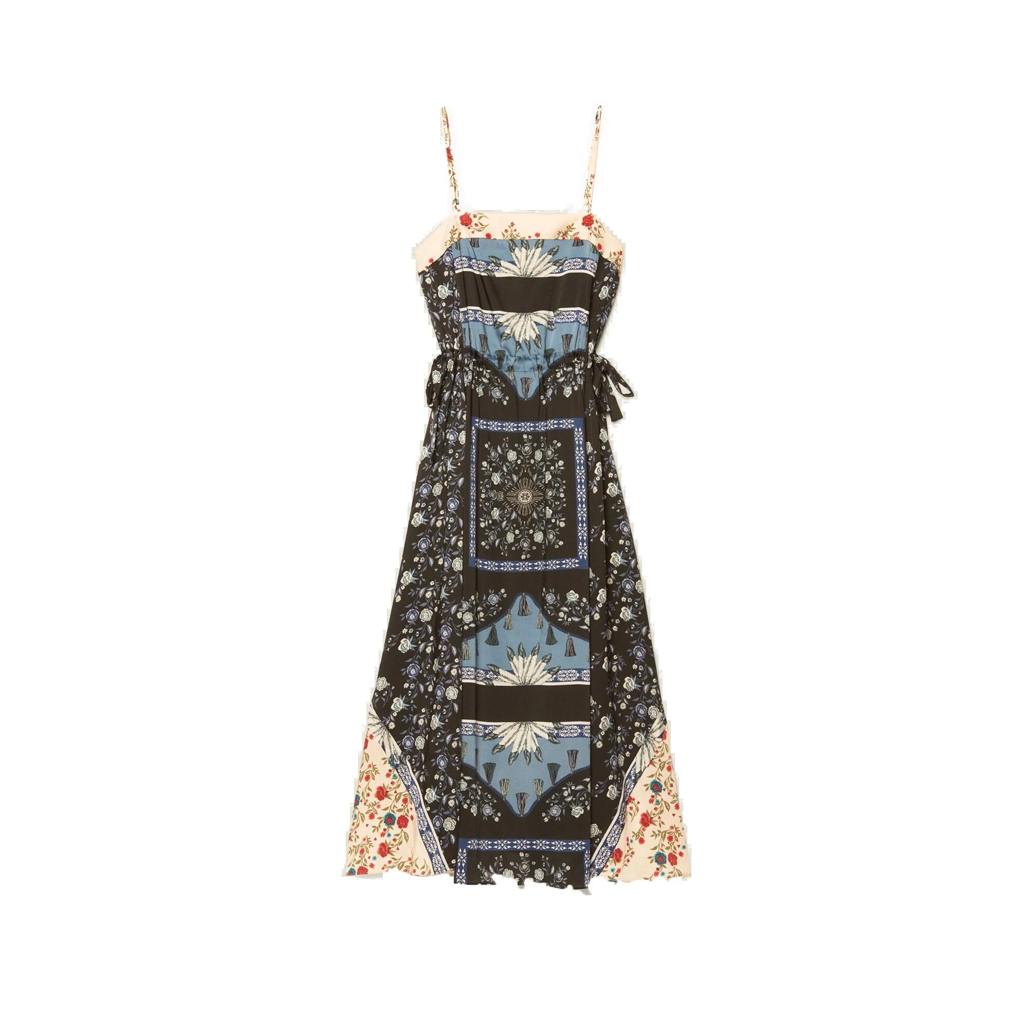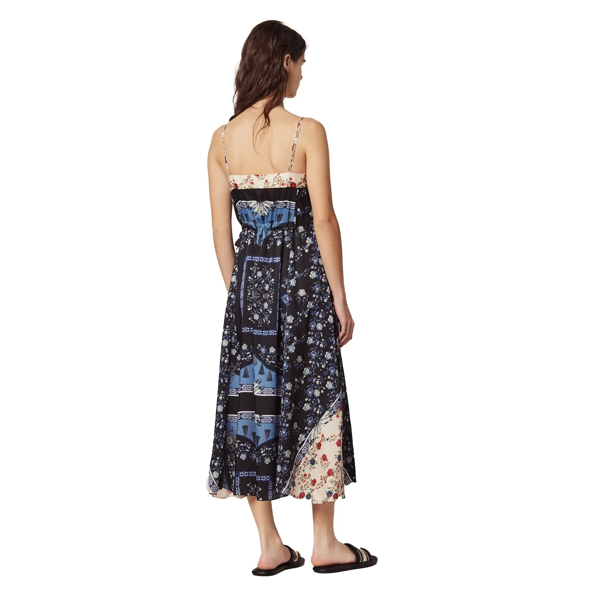 VESTIDO LARGO ESTAMPADO CON TIRANTES, MARCA SANDRO. 100% POLIÉSTER. LAVADO A MANDO DELICADO, SIN BLANQUEADOR, NO SECADORA. REVISAR ETIQUETA INTERNA DE LAVADO PARA MÁS INFORMACIÓN.