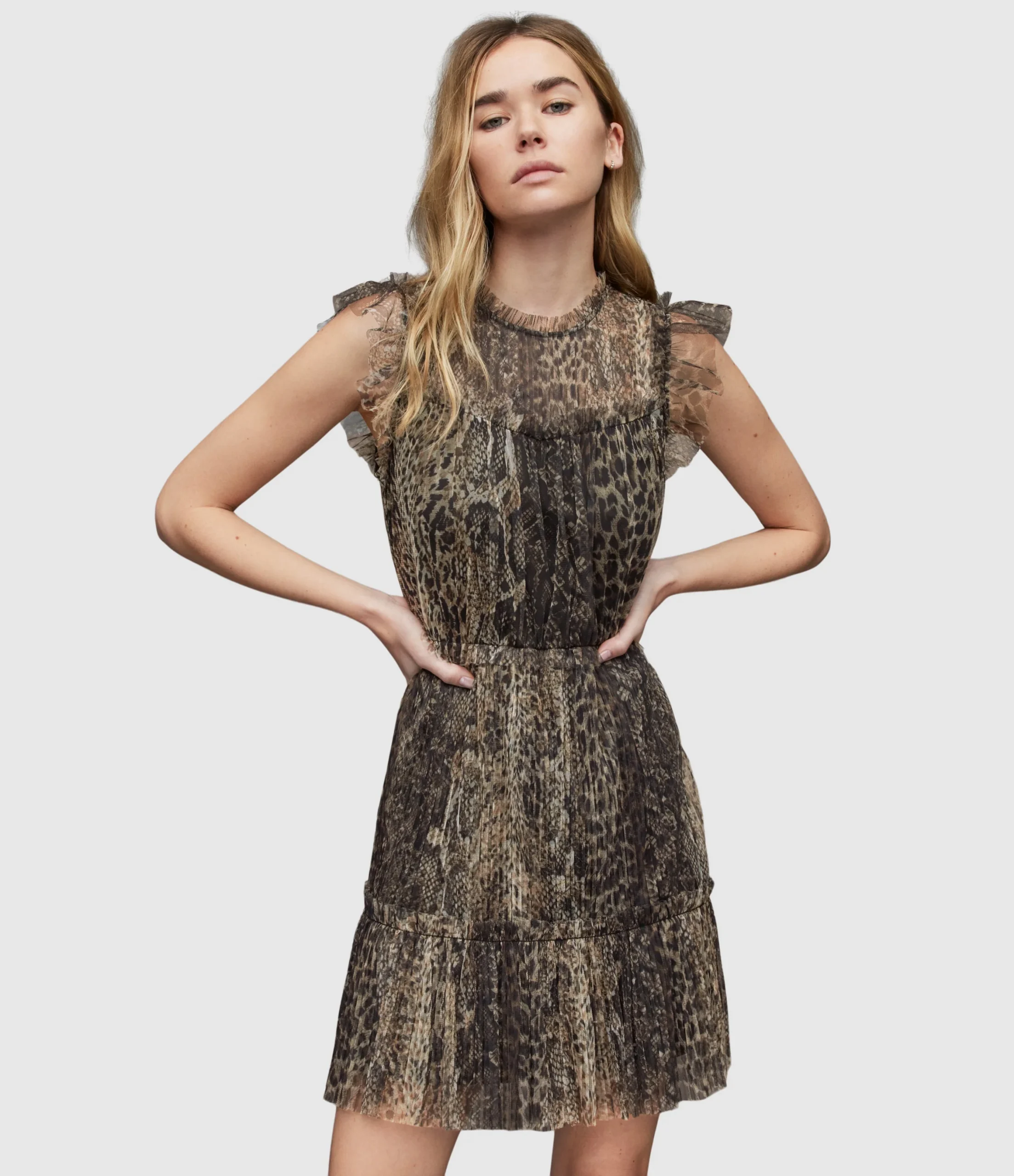 Vestido Perri Noche Amarillo para mujer, marca AllSaints. COMPOSICIÓN Y LAVADO: Consultar etiqueta interna.
