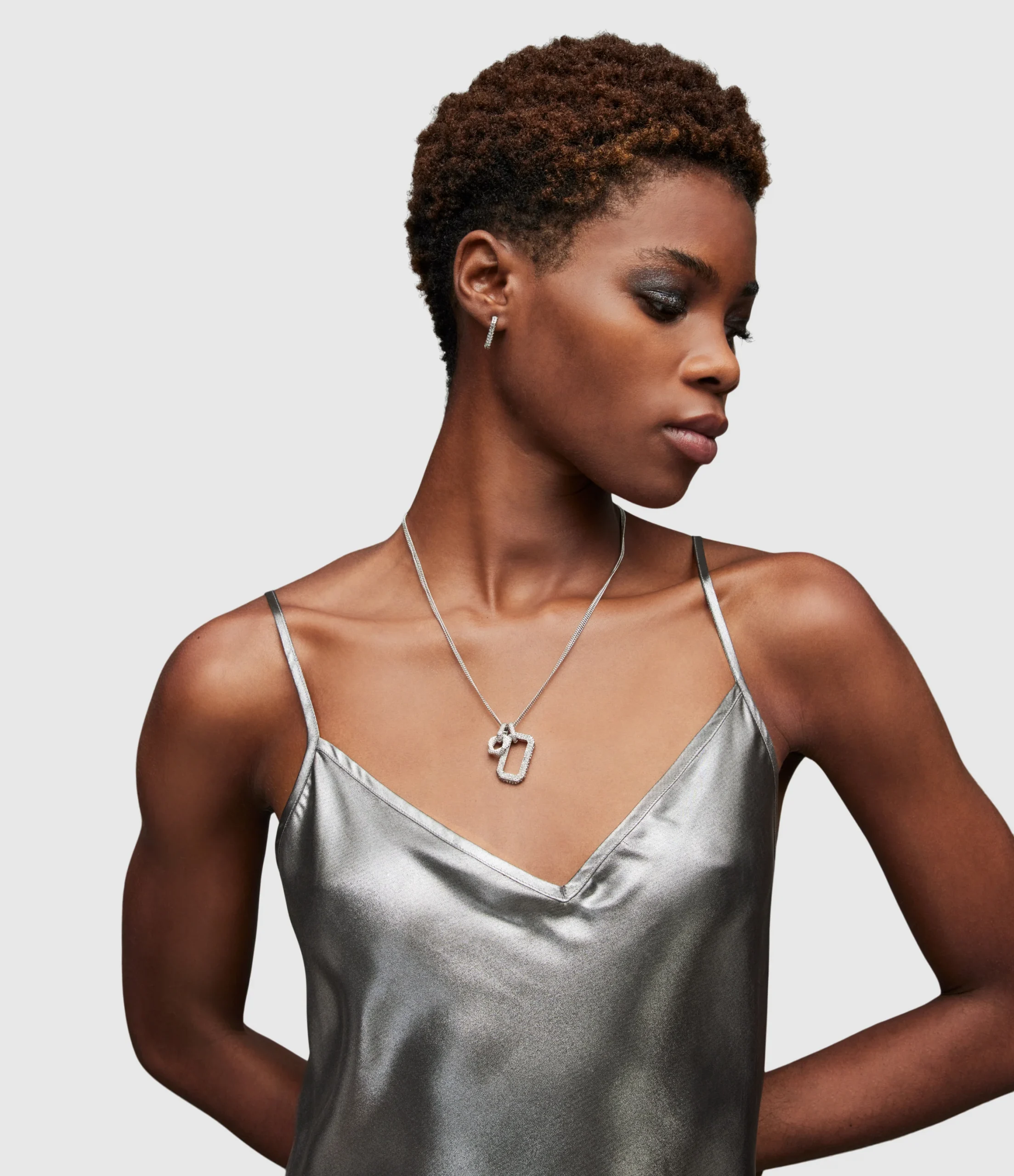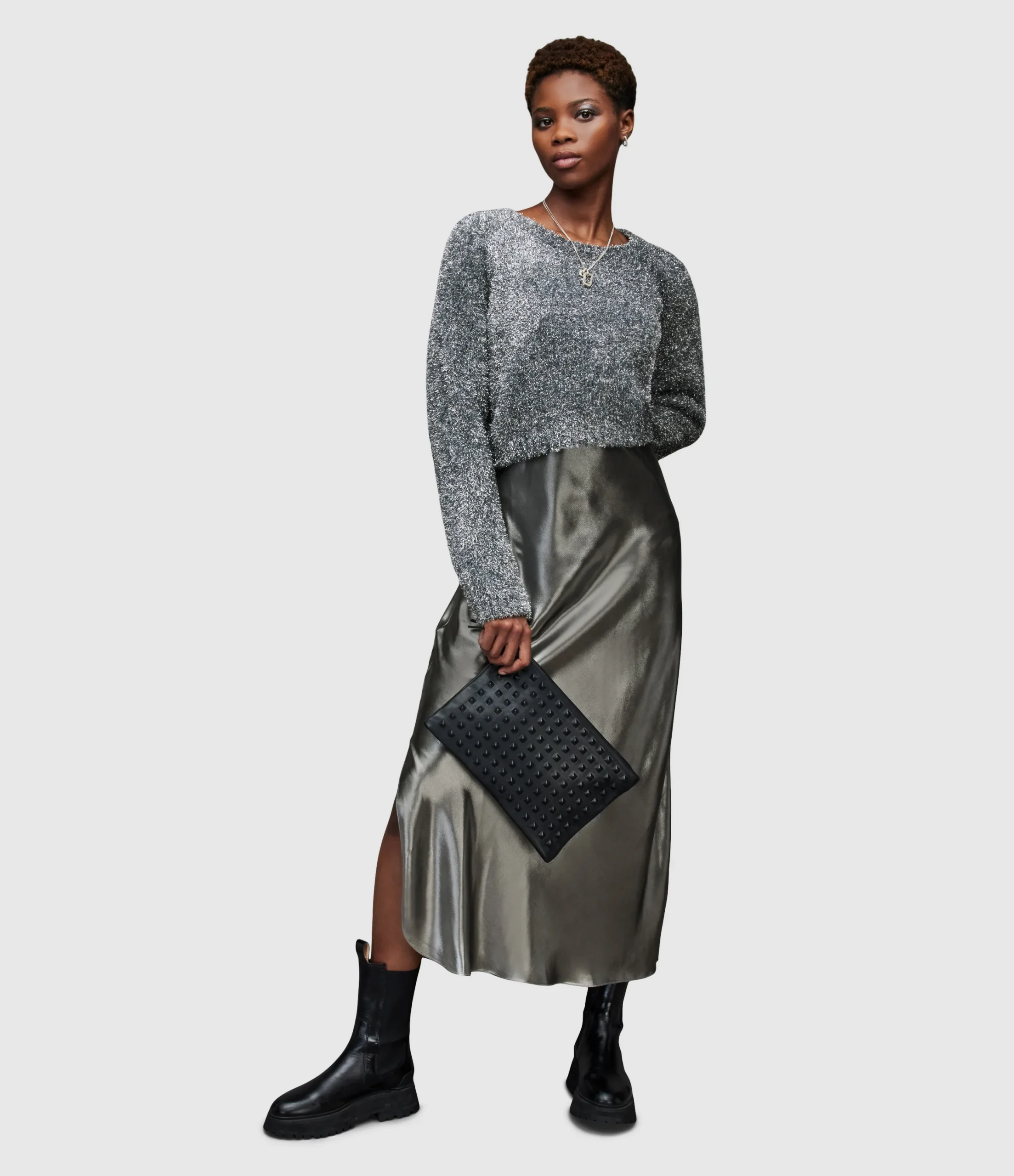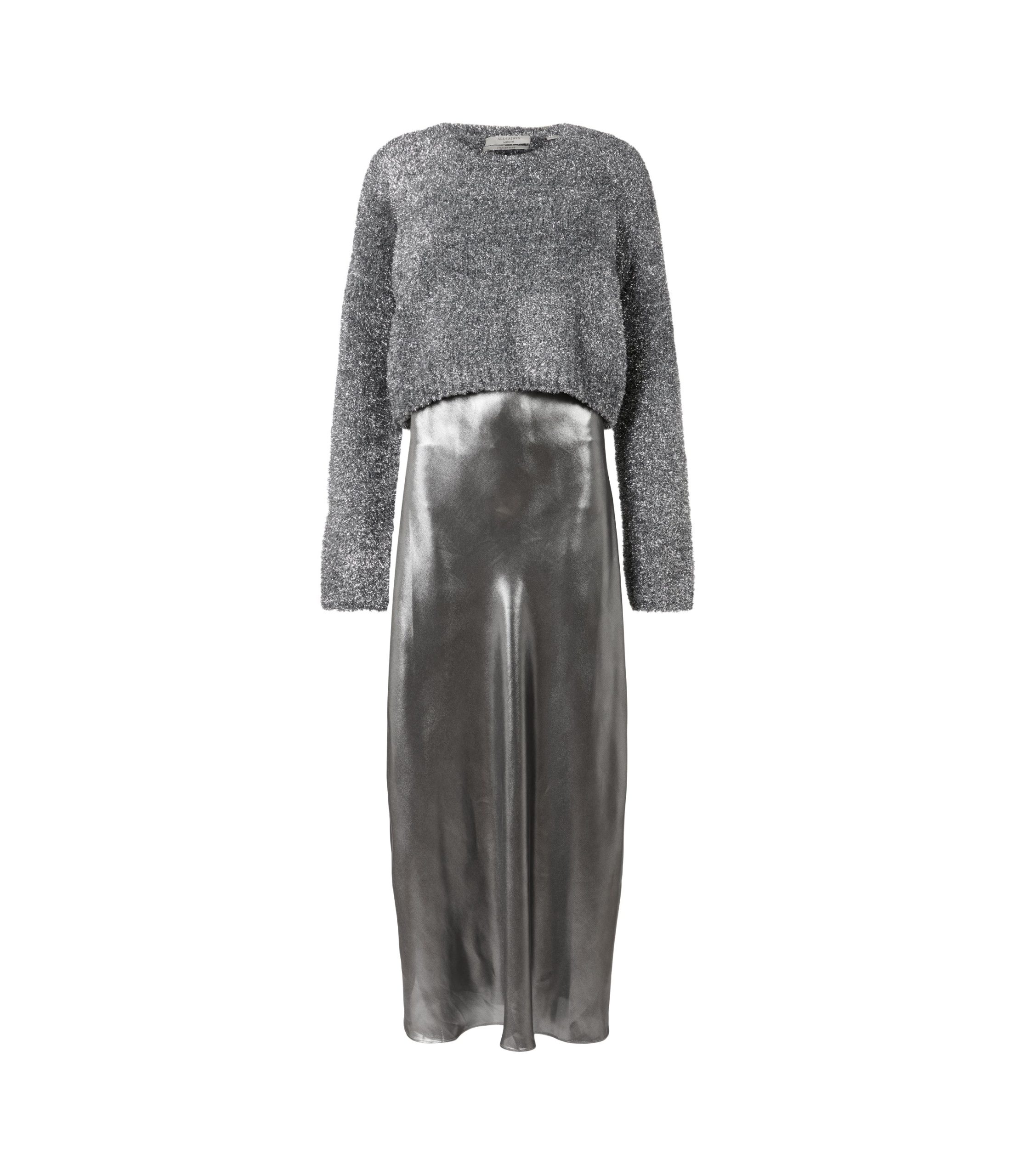 Vestido Rosetta Tinsel Negro/Plata, marca AllSaints. Composición: 96% POLYESTER 4% Elastano