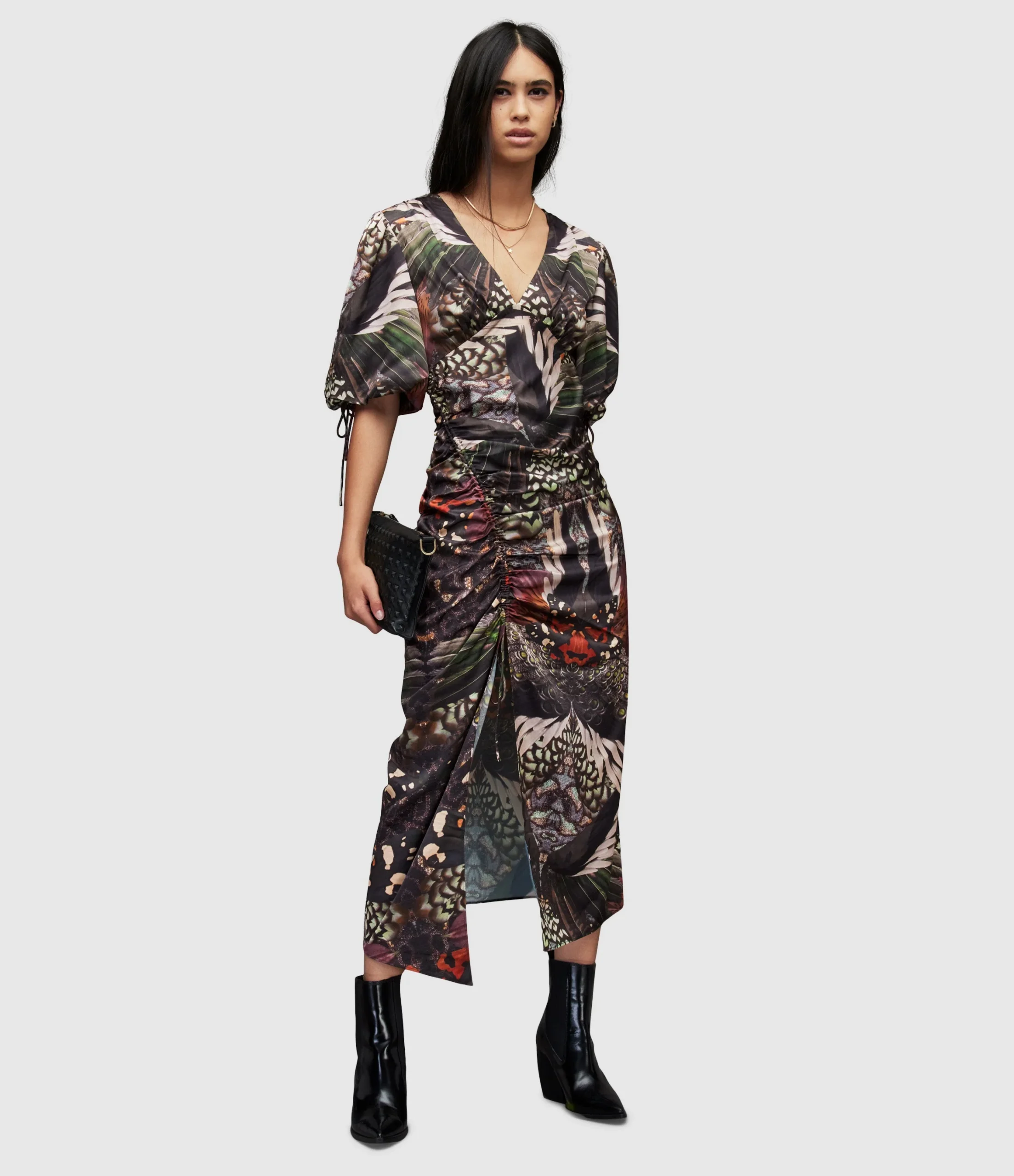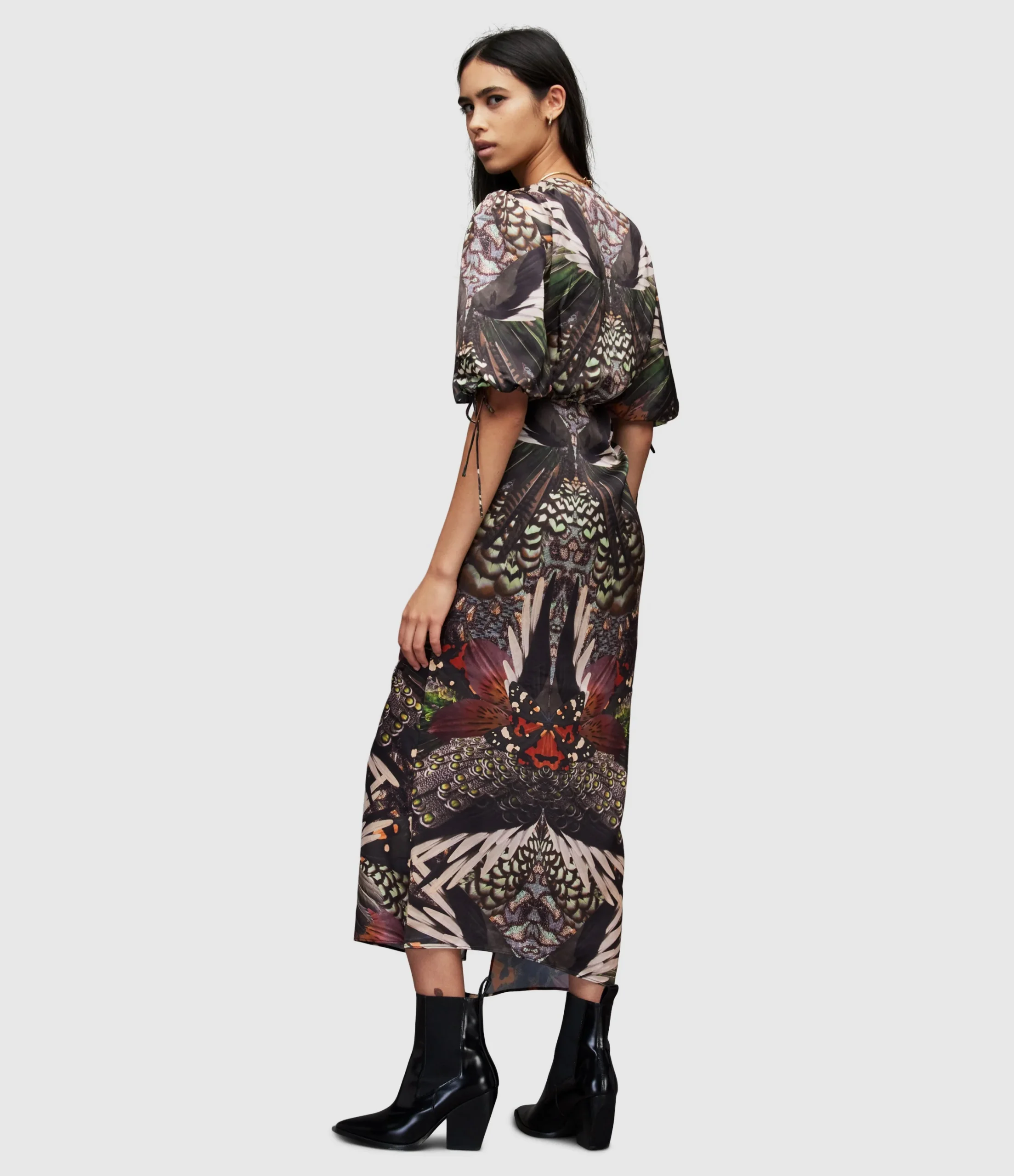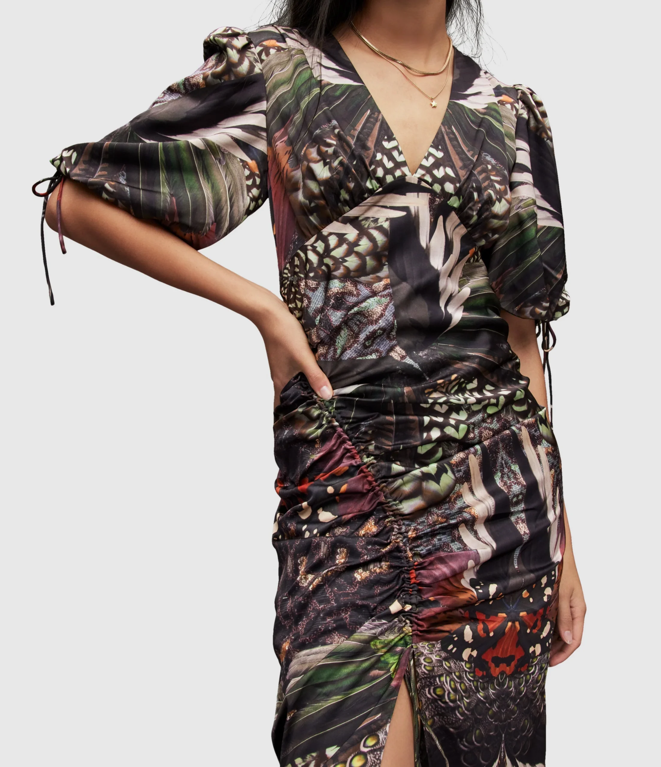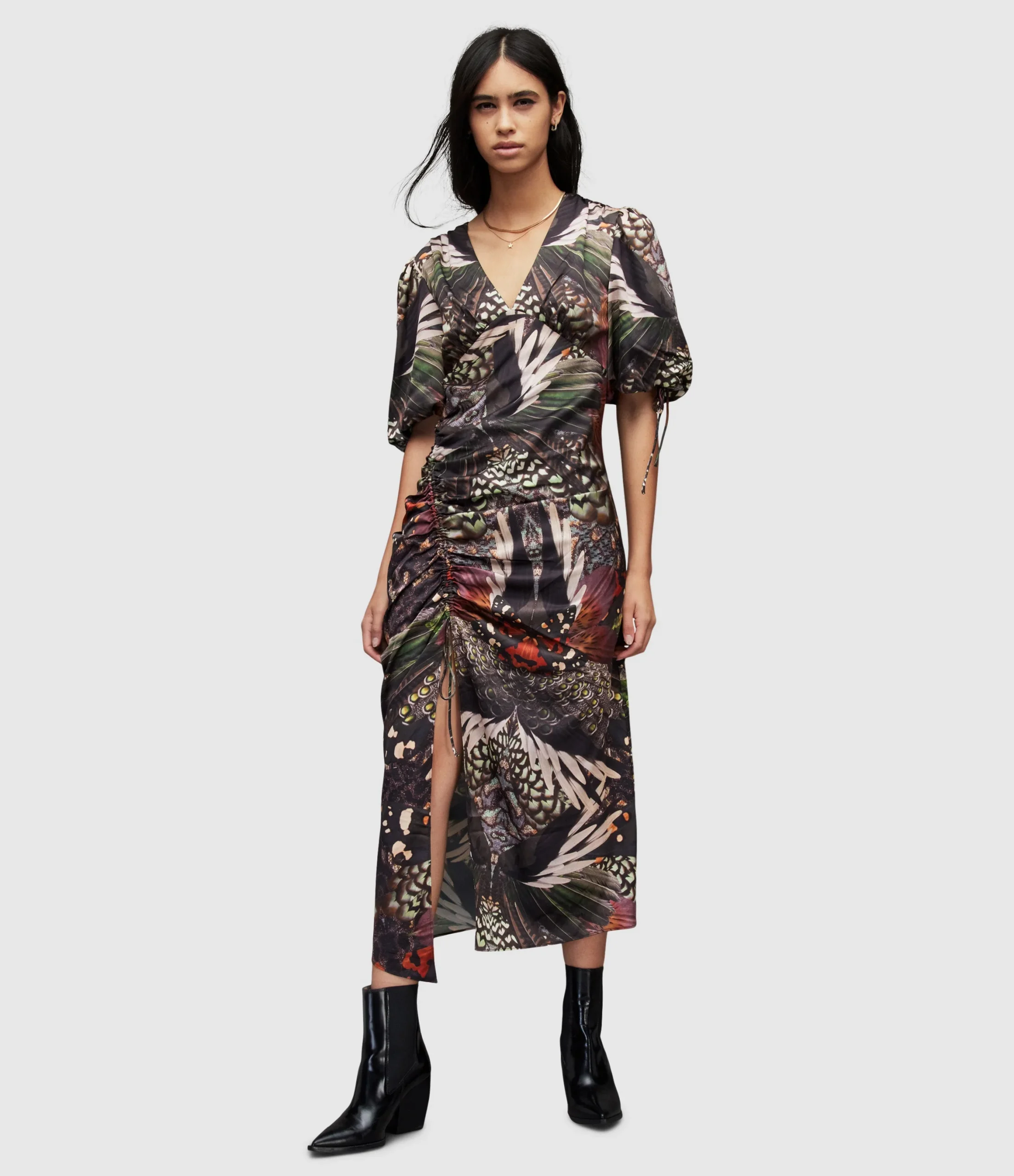 Vestido Safiya Gene Verde para mujer, marca AllSaints. COMPOSICIÓN Y LAVADO: Consultar etiqueta interna.