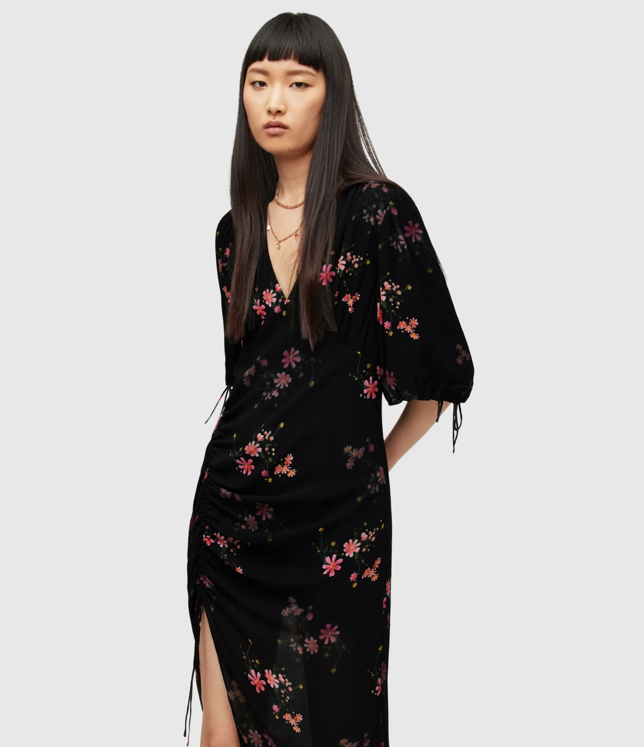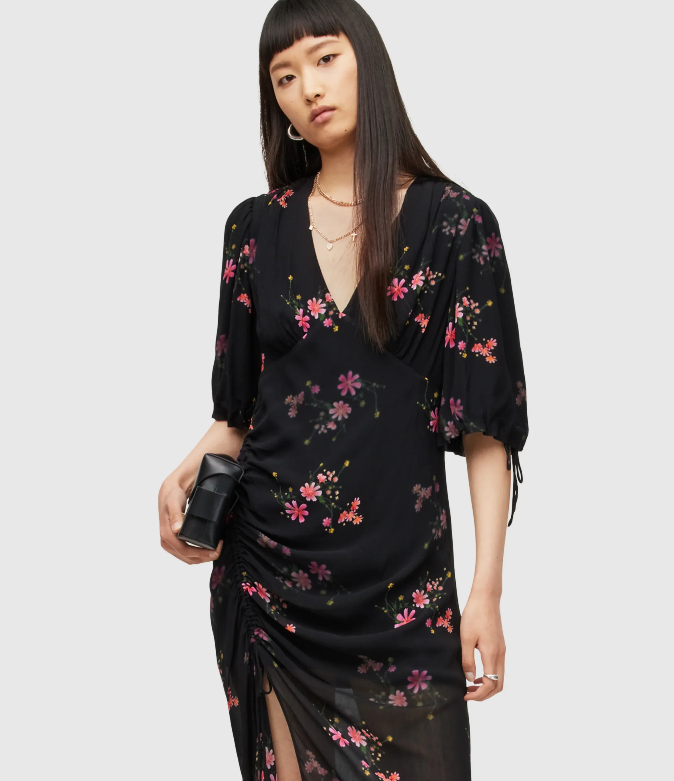 Vestido Safiya Solanio Negro, marca AllSaints. Composición: 100% Viscosa