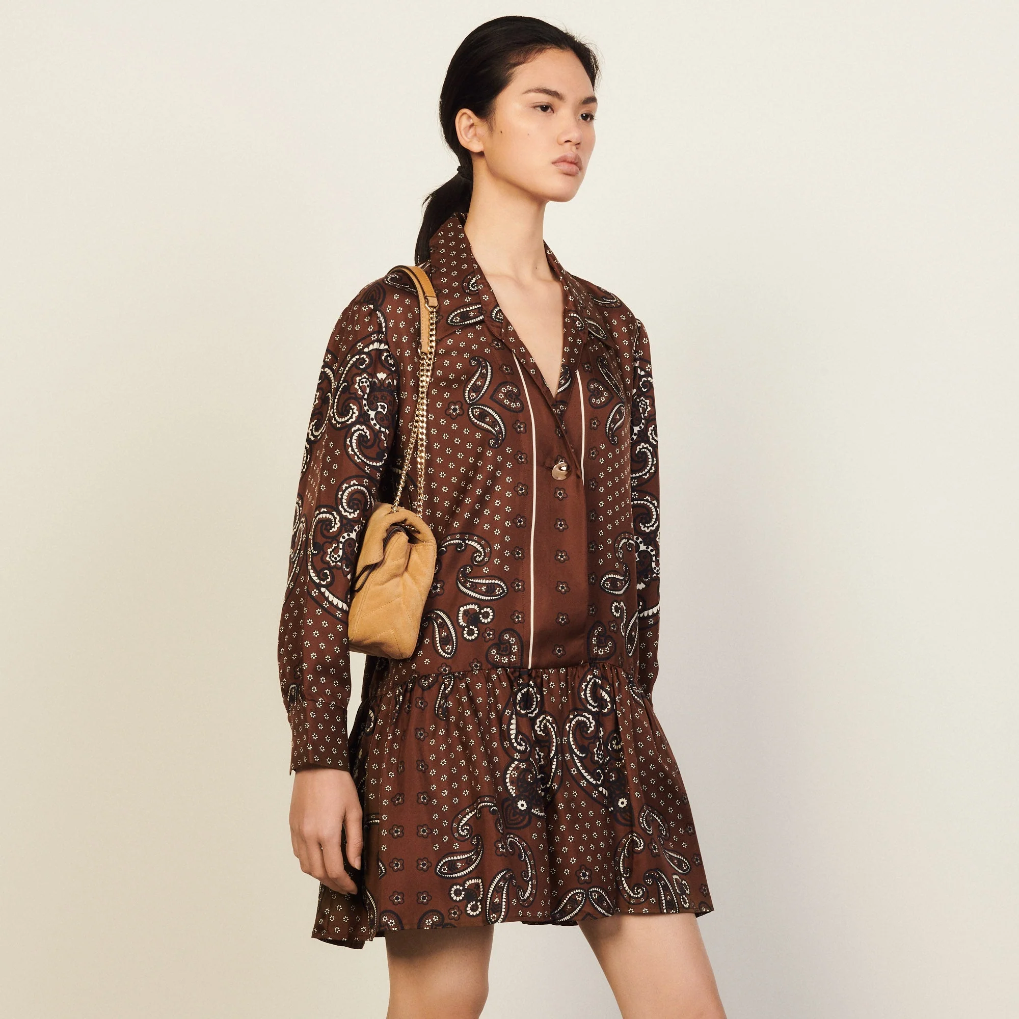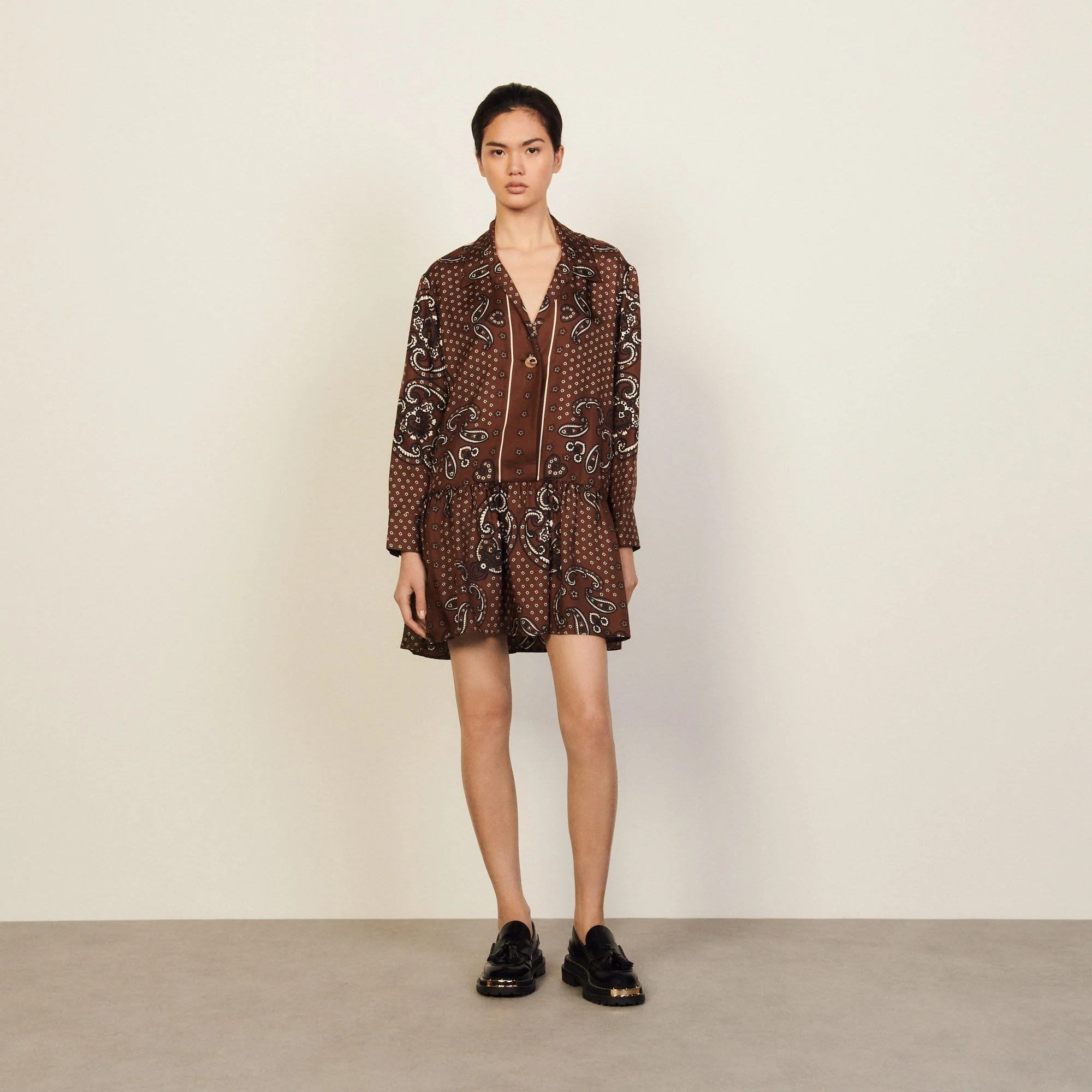 • Vestido corto estampado de seda
