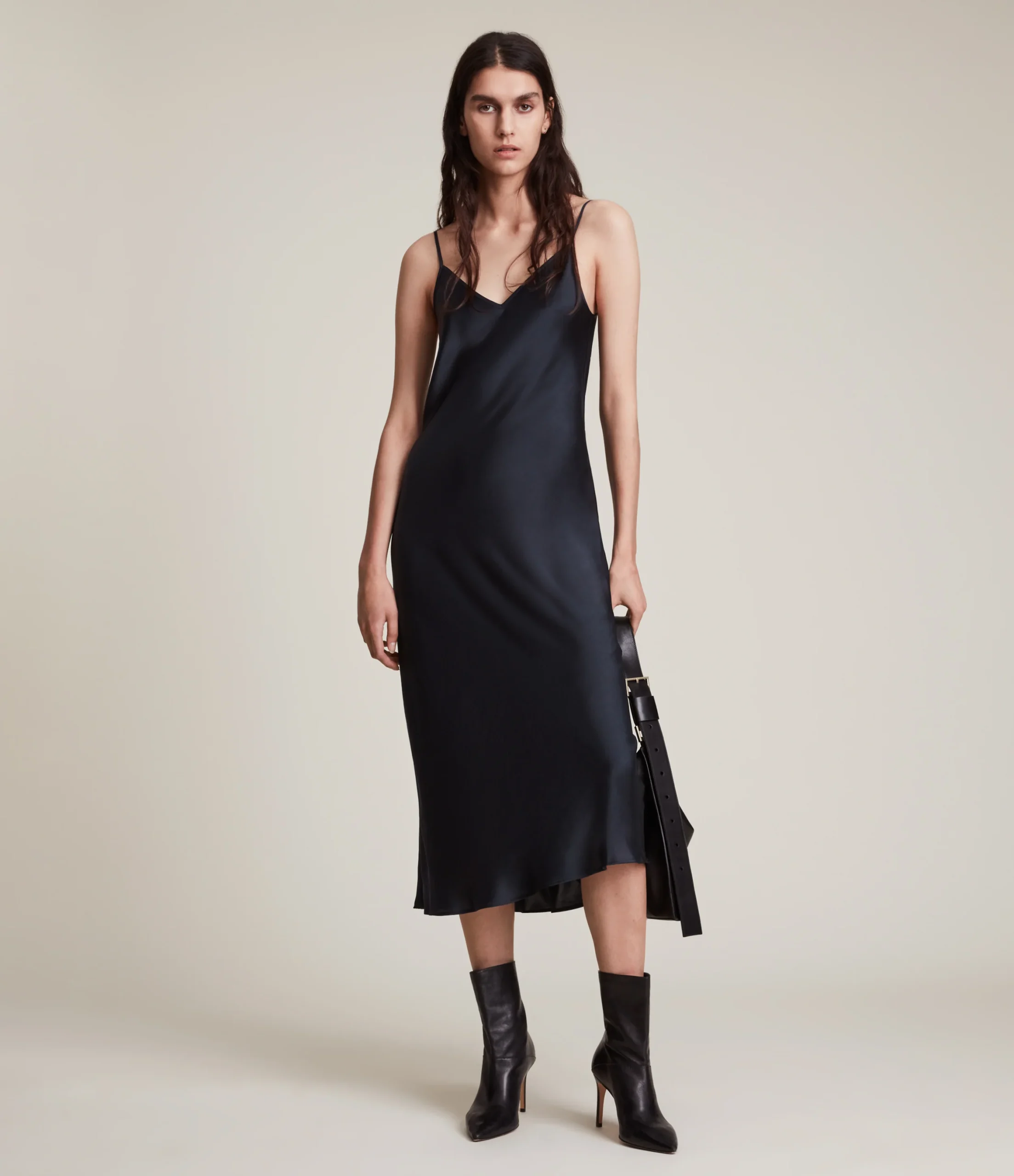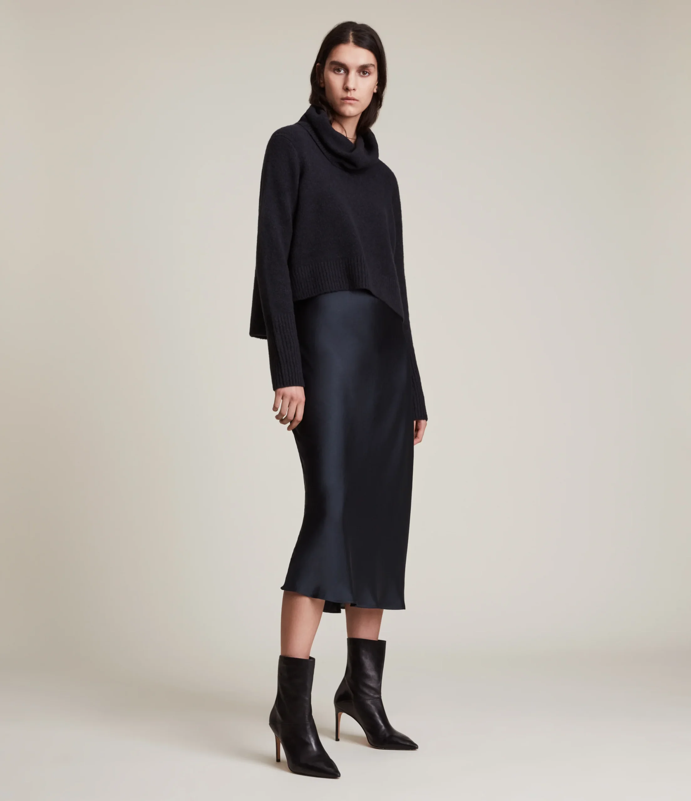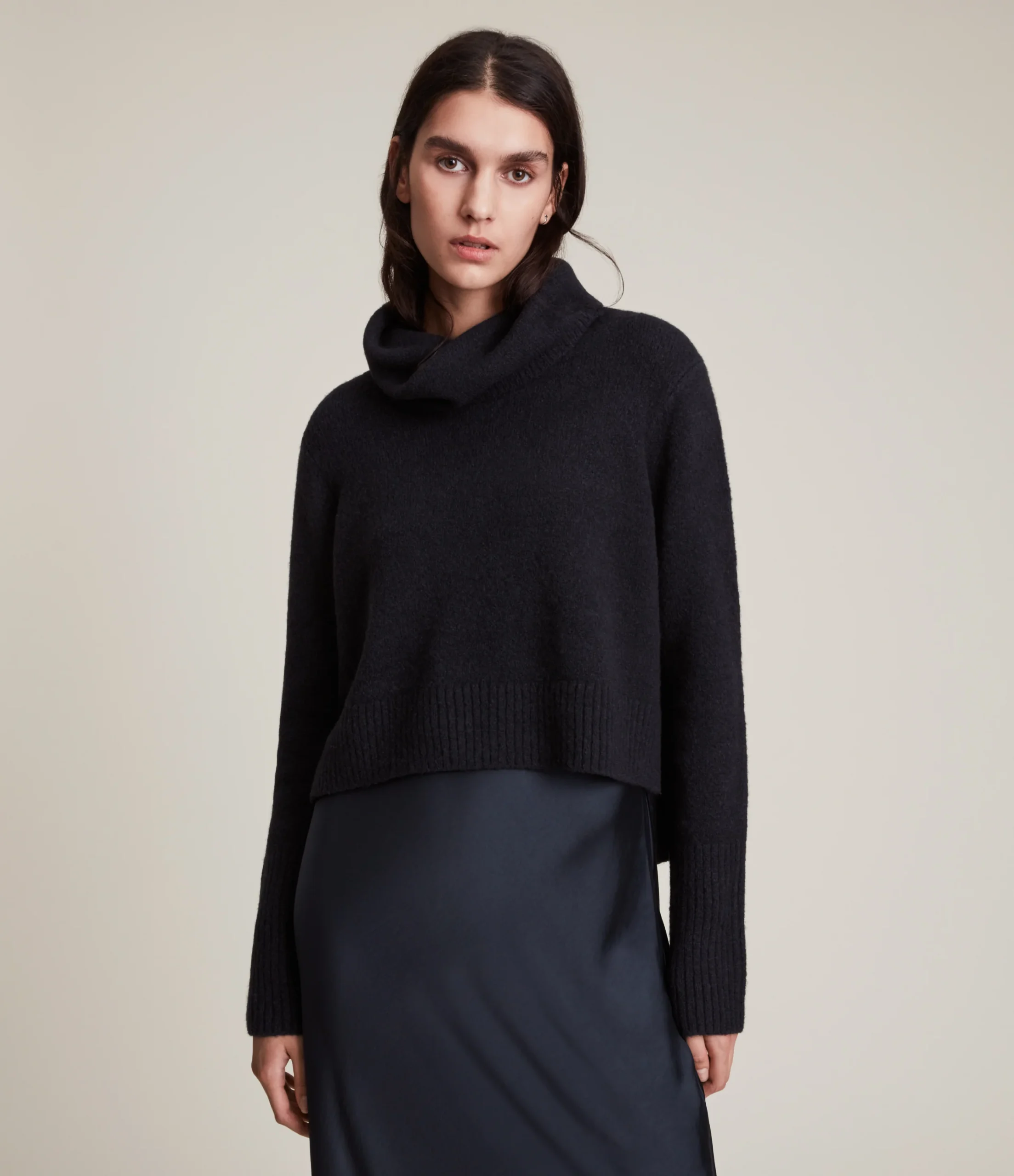 Vestido Tierny Camello, marca AllSaints. Composición: 43% lana 26% Poliamida 18% Viscosa 10% yak 3% Elastano