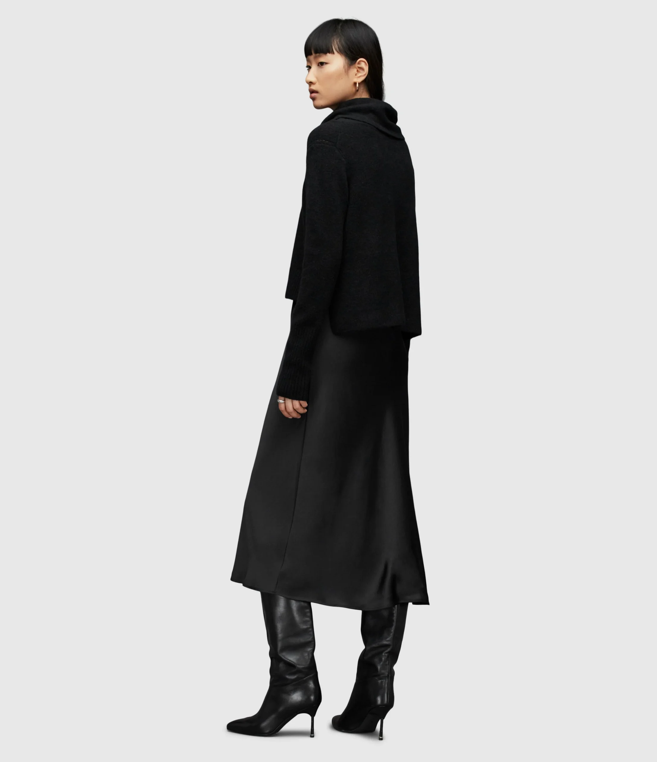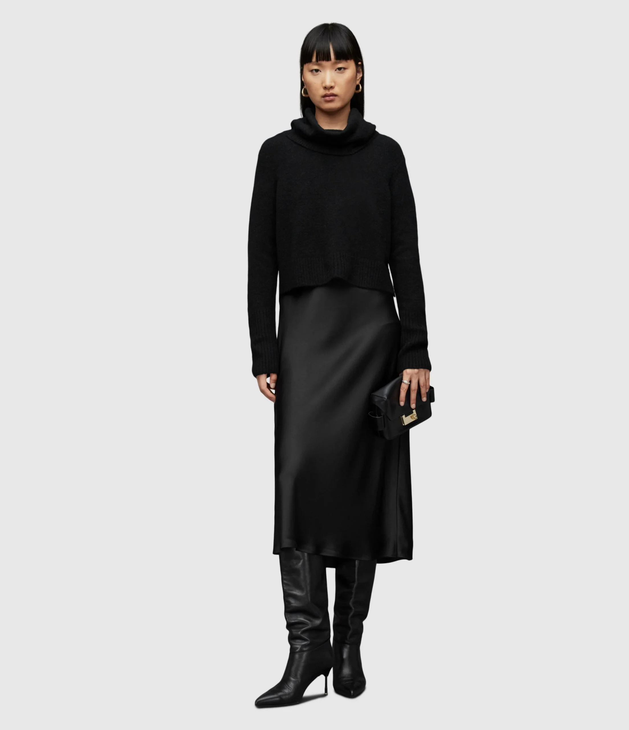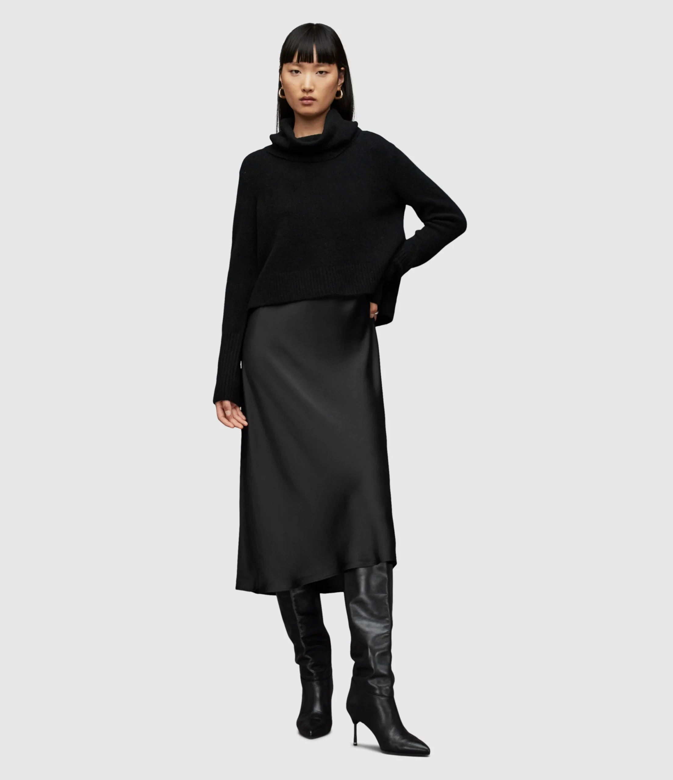 Vestido Tierny Negro para mujer, marca AllSaints, cuello enrollado. COMPOSICIÓN Y LAVADO: Consultar etiqueta interna.