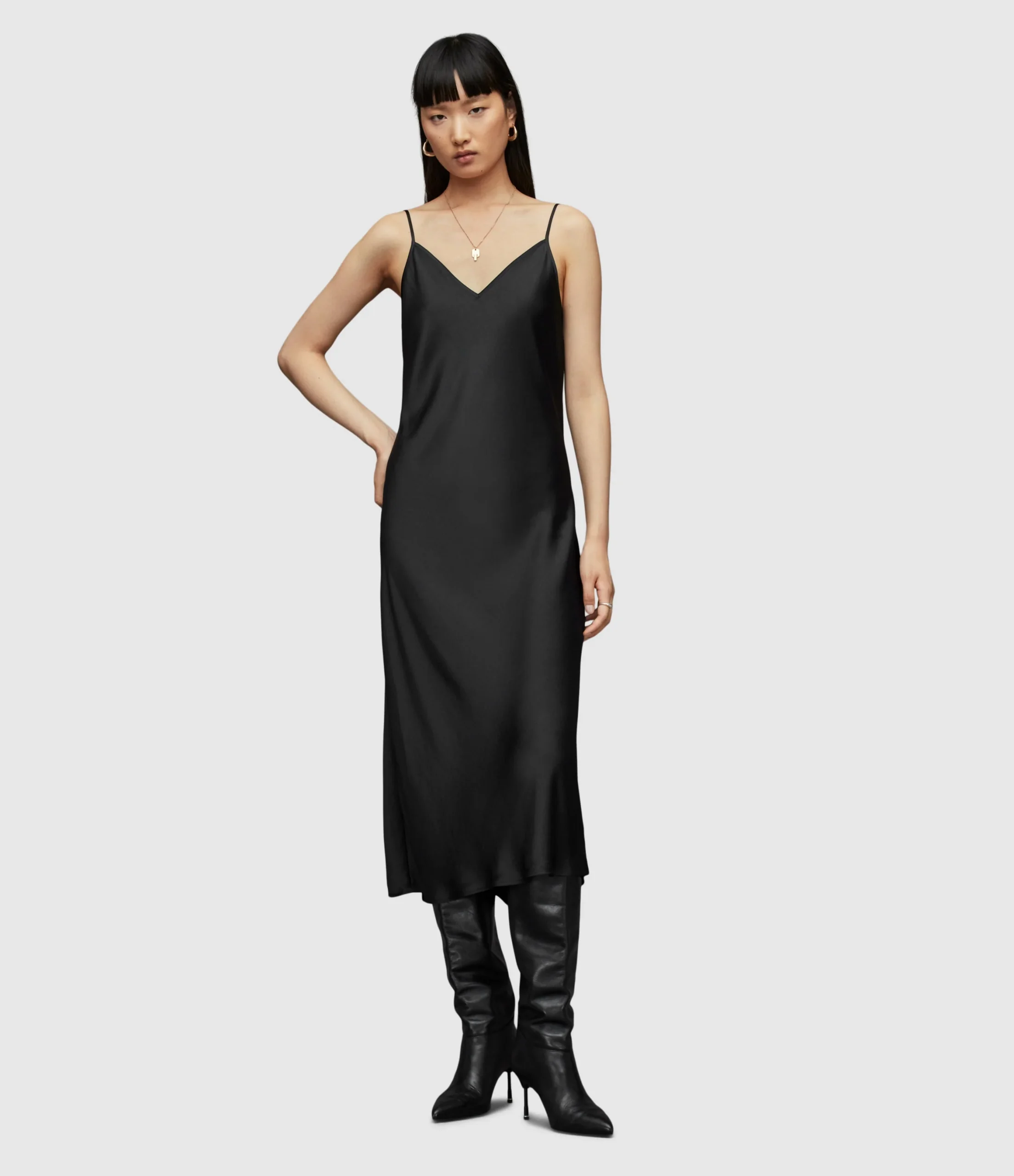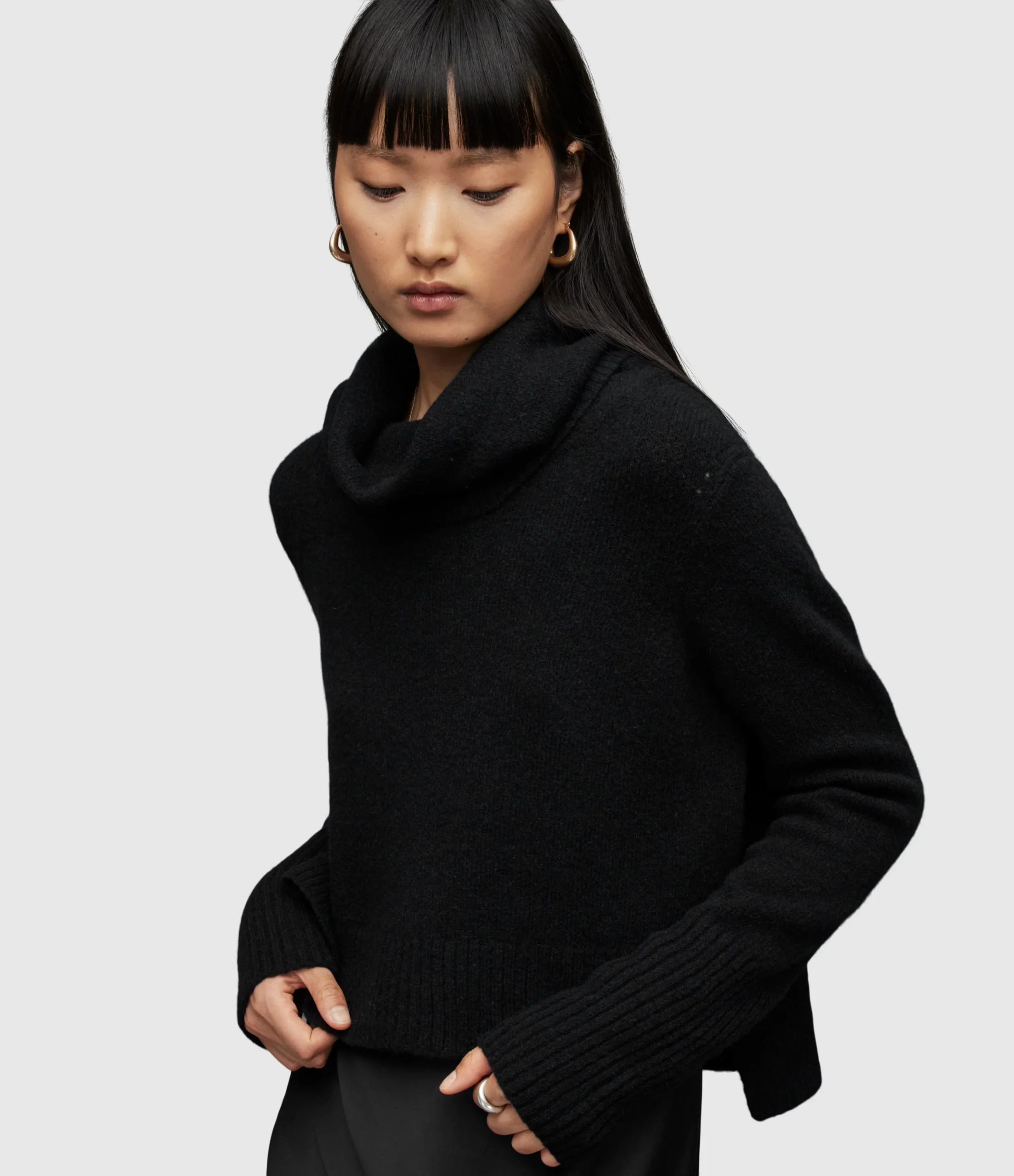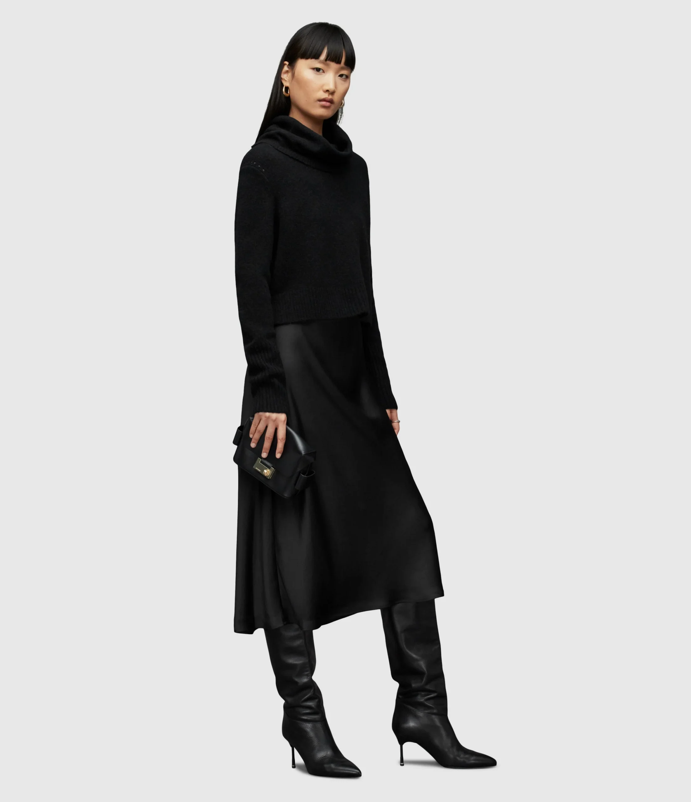 Vestido Tierny Negro para mujer, marca AllSaints, cuello enrollado. COMPOSICIÓN Y LAVADO: Consultar etiqueta interna.