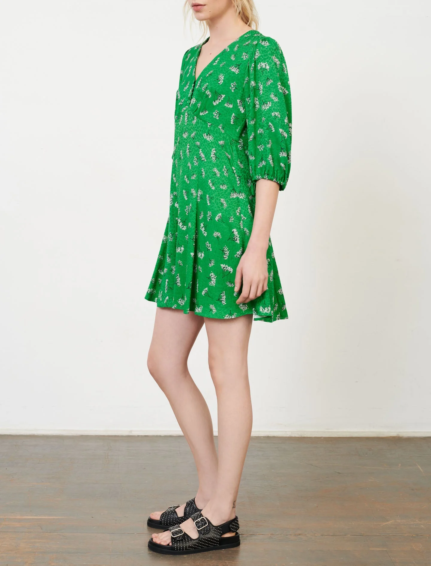 Vestido Verde Y Grosella, Marca Maje. Composición: Tela Principal: 53% Cupro / 47% Viscosa / Botones: 100% Nylon