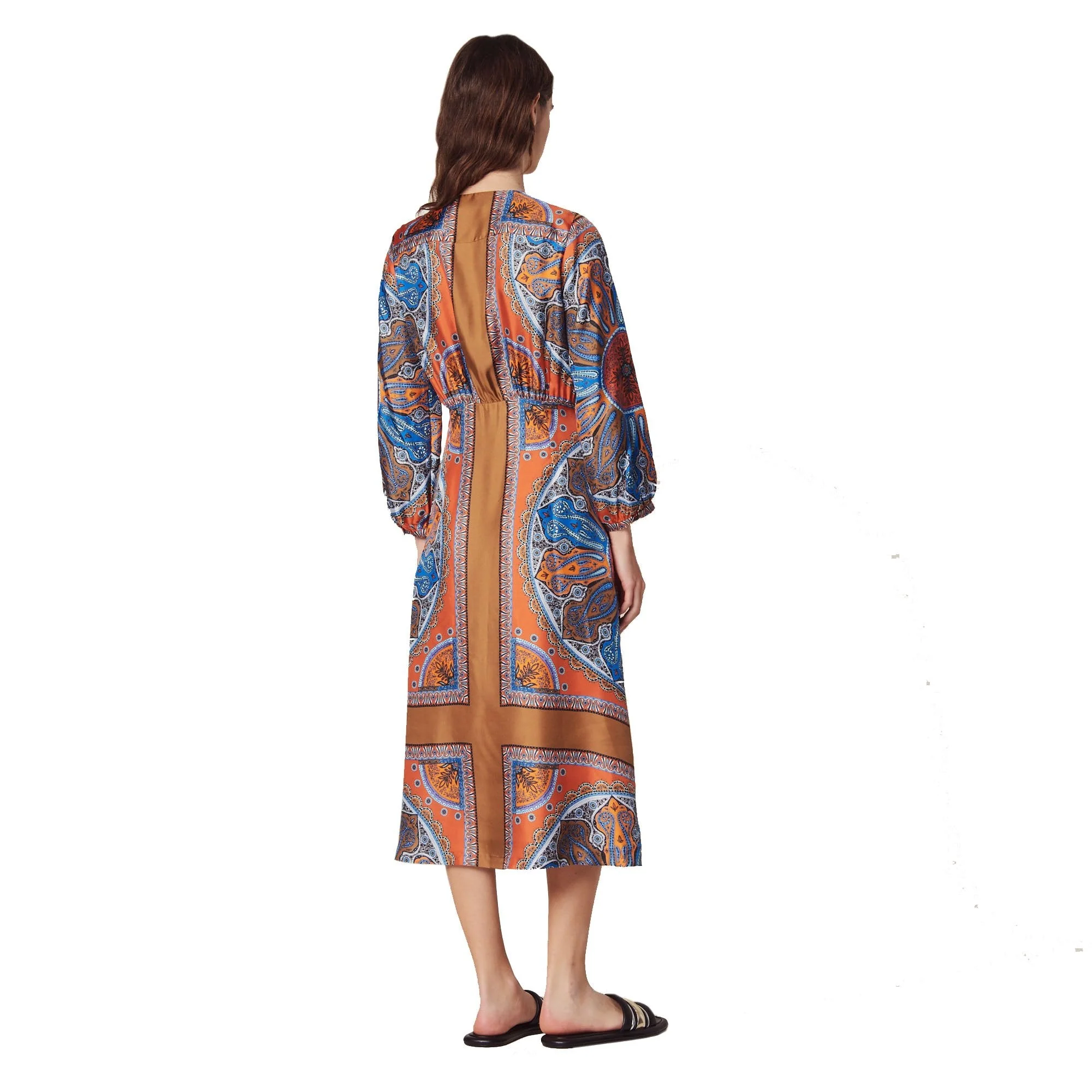 VESTIDO LARGO ESTAMPADO, MANGA LARGA Y ESCOTE V, MARCA SANDRO. CONSULTAR COMPOSICIÓN E INSTRUCCIONES DE LAVADO EN ETIQUETA INTERNA.
