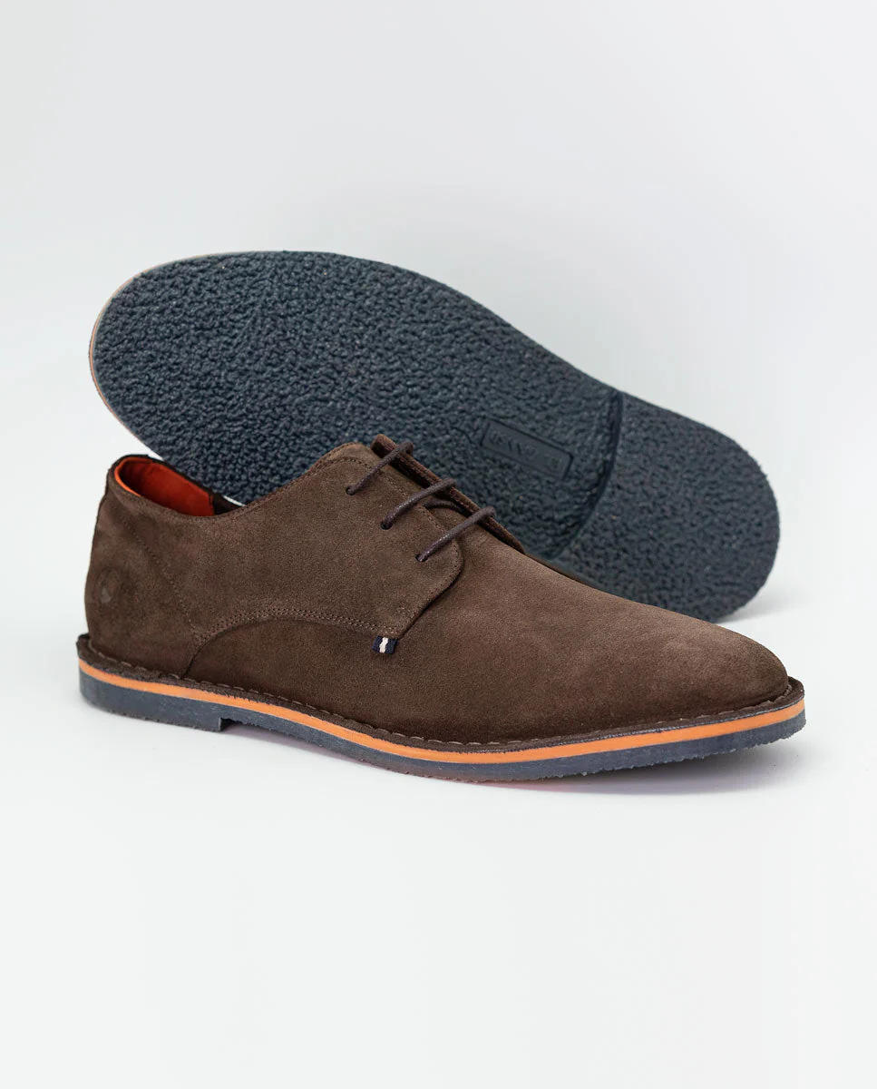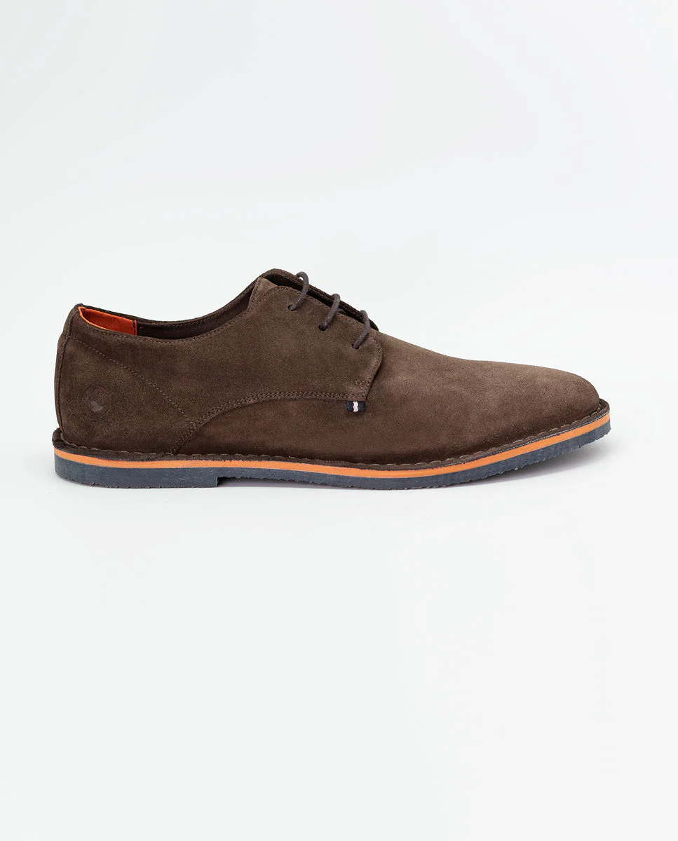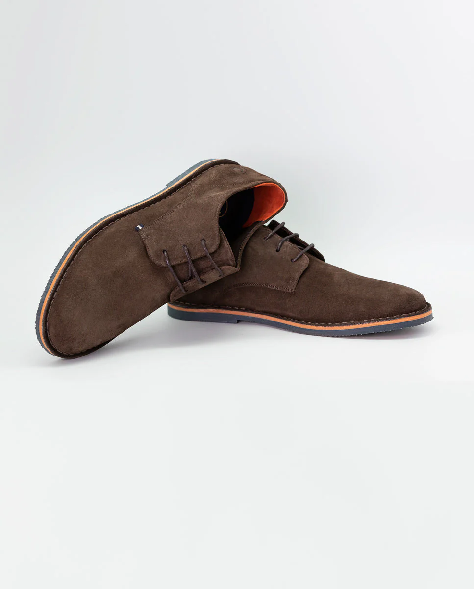 Zapato de hombre realizado en piel 100% de serraje con acabado repelente al agua, con suela de goma reciclada. Logo sellado en lateral. Cierre con cordones al tono y cordones de repuesto a contraste. Fabricados en Portugal. Plantilla desarrollada en Poliuretano, de alta confortabilidad, transpirable, y 100% reciclada. Piel curtida utilizando prácticas más sostenibles. Estos productos se han producido en tenerías certificadas Leather Working Group, utilizando energías renovables y tecnologías que reducen el consumo de agua. Composición: 100% Piel Serraje / Composicion forro: 65% Poliéster, 35% Algodón / Composición suela: 100% TR