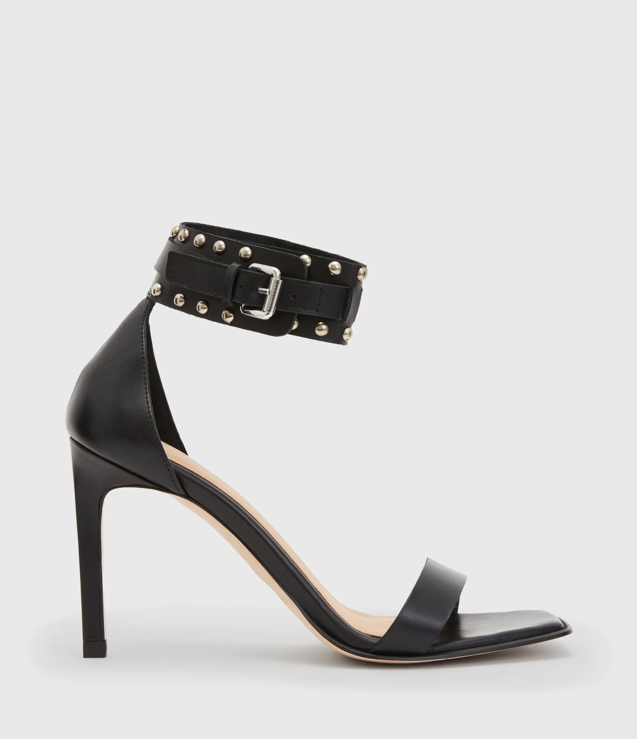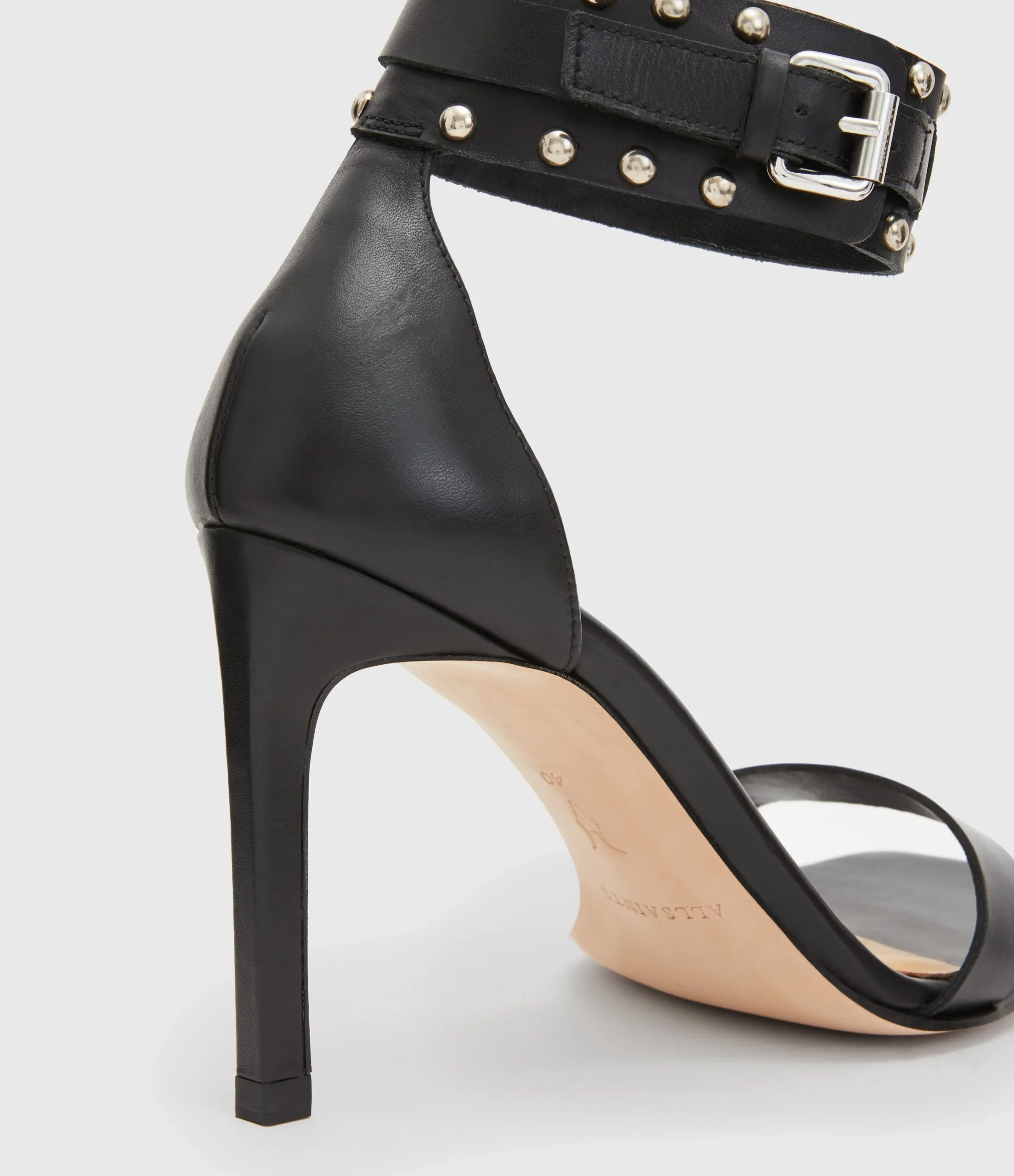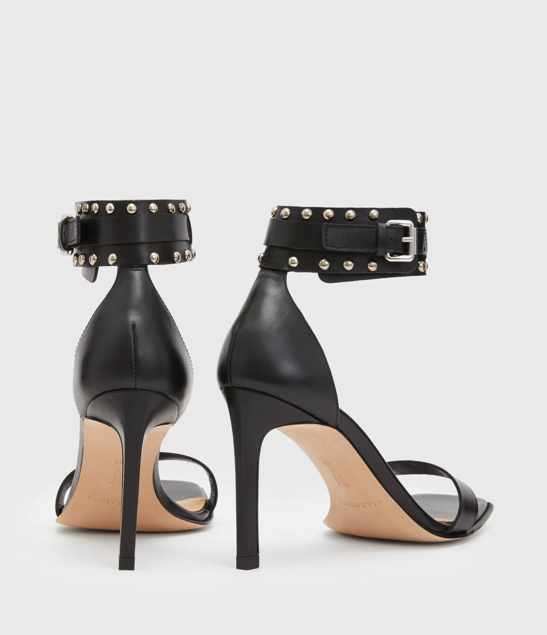 Zapatos Alma Negro para mujer, marca AllSaints, estilo sandalia con estoperoles. COMPOSICIÓN Y LAVADO: Consultar etiqueta interna.