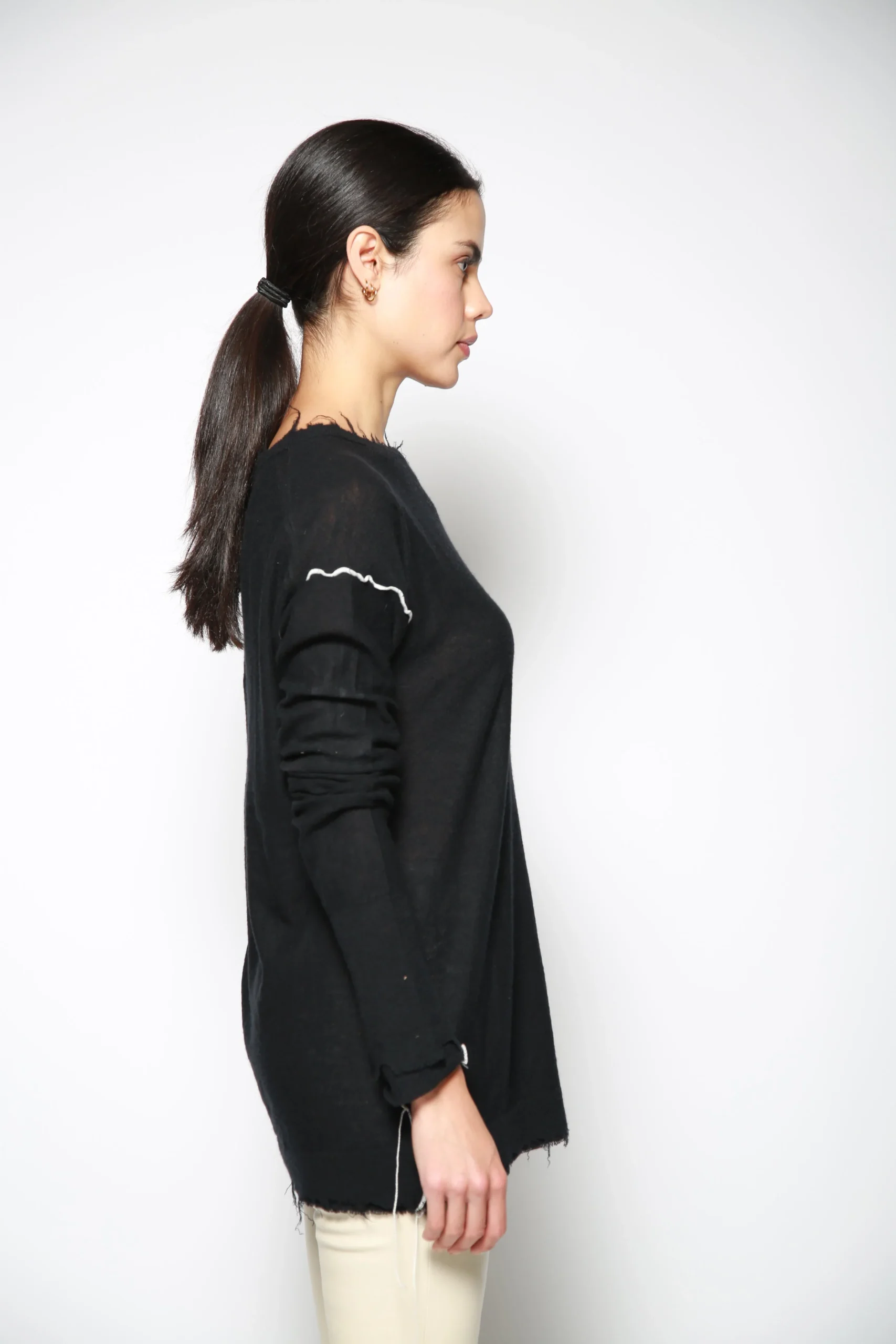 Top Coverstitch Crewneck Negro
