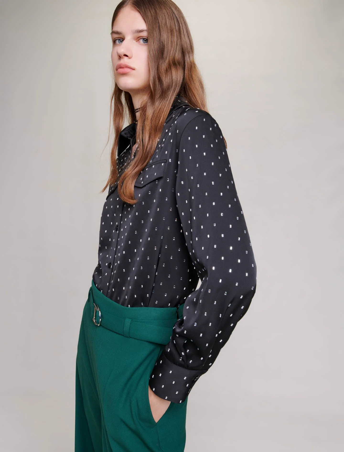 Camisa satinada con strass