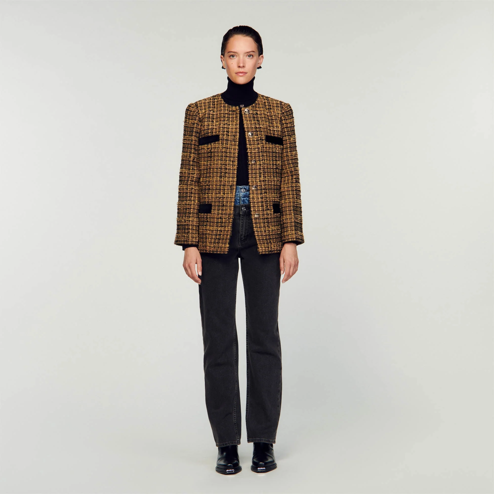 Chaqueta de tweed, pasamano en contraste