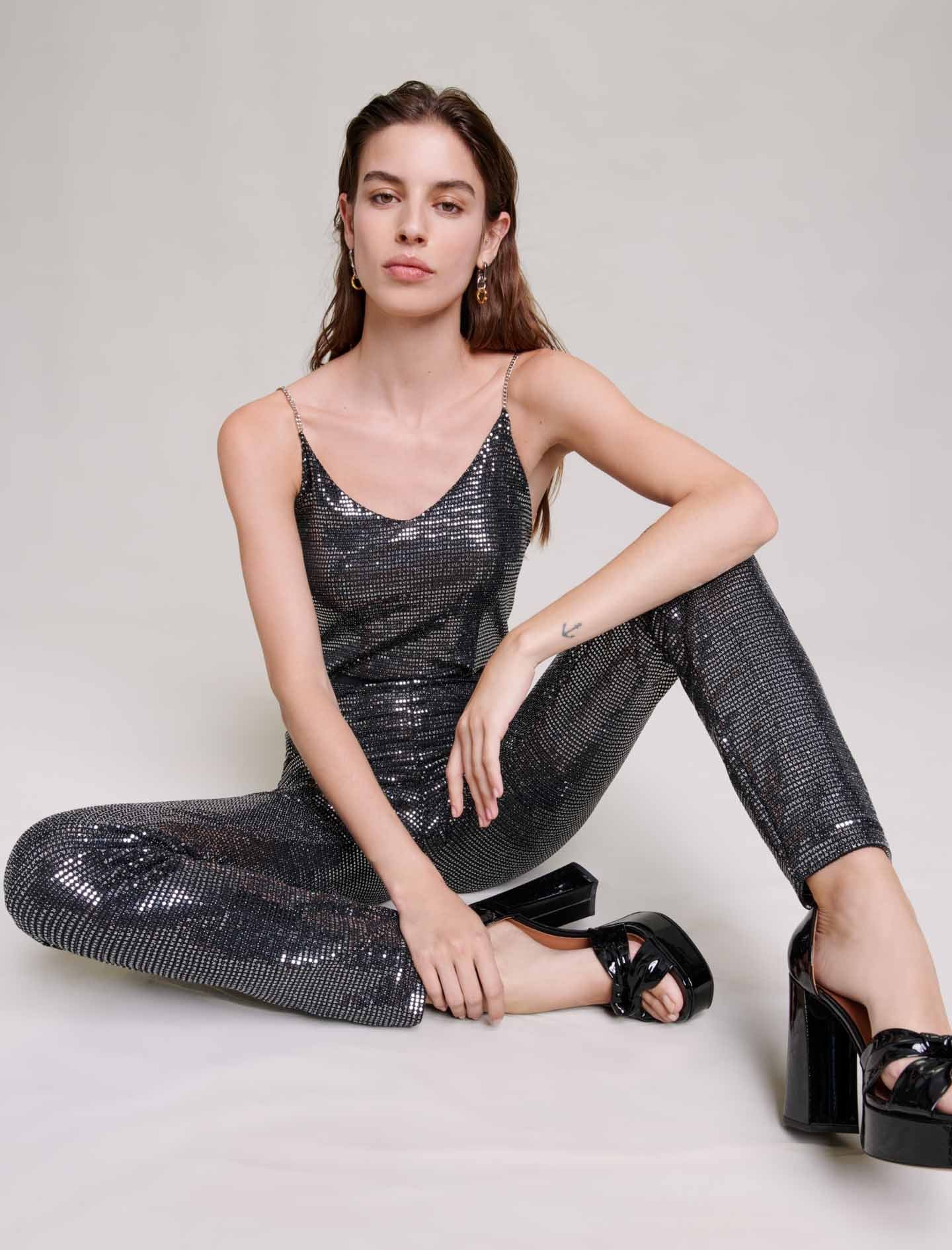 Falda semilarga con lentejuelas