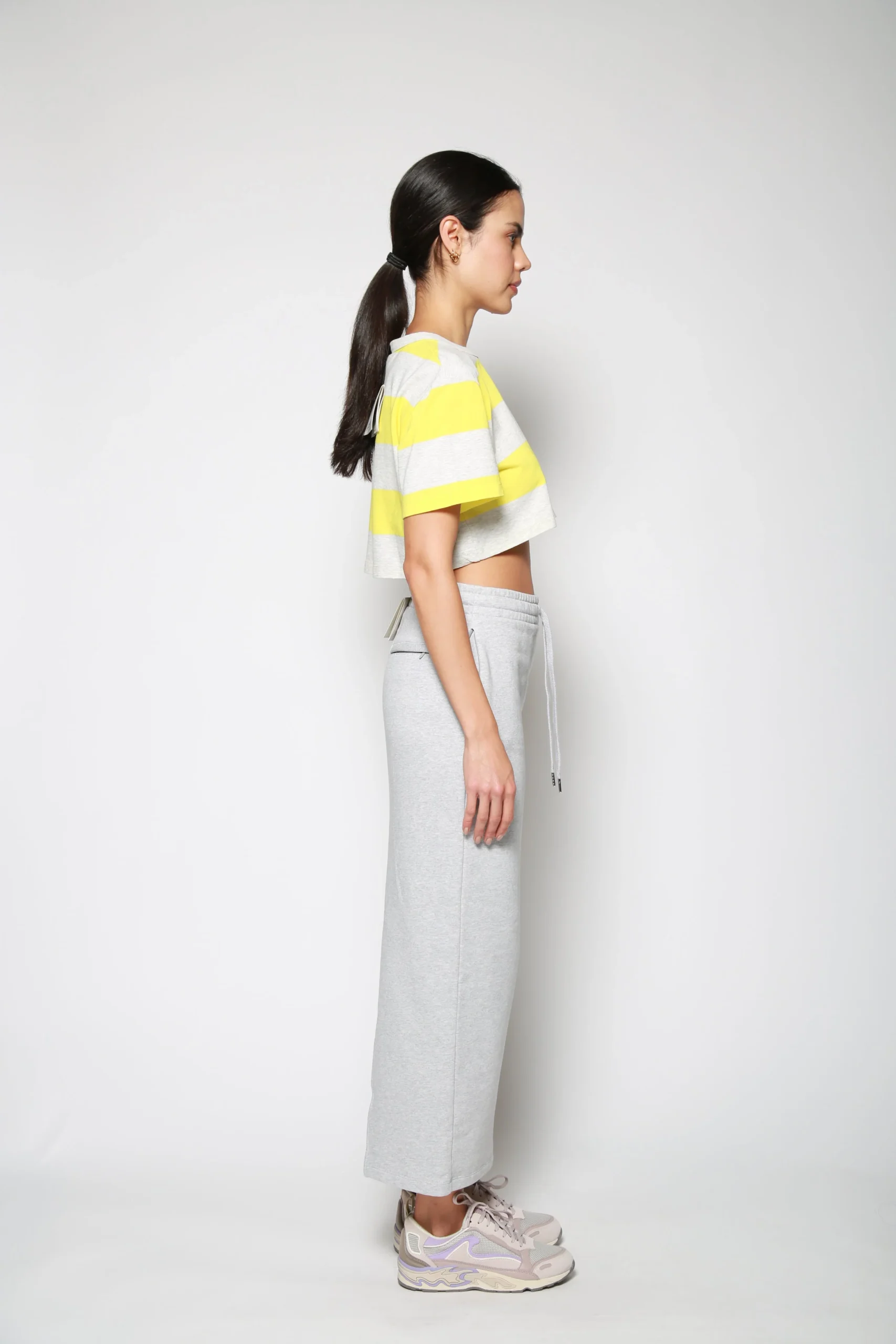Playera Wide Stripe Cropped Gris Claro